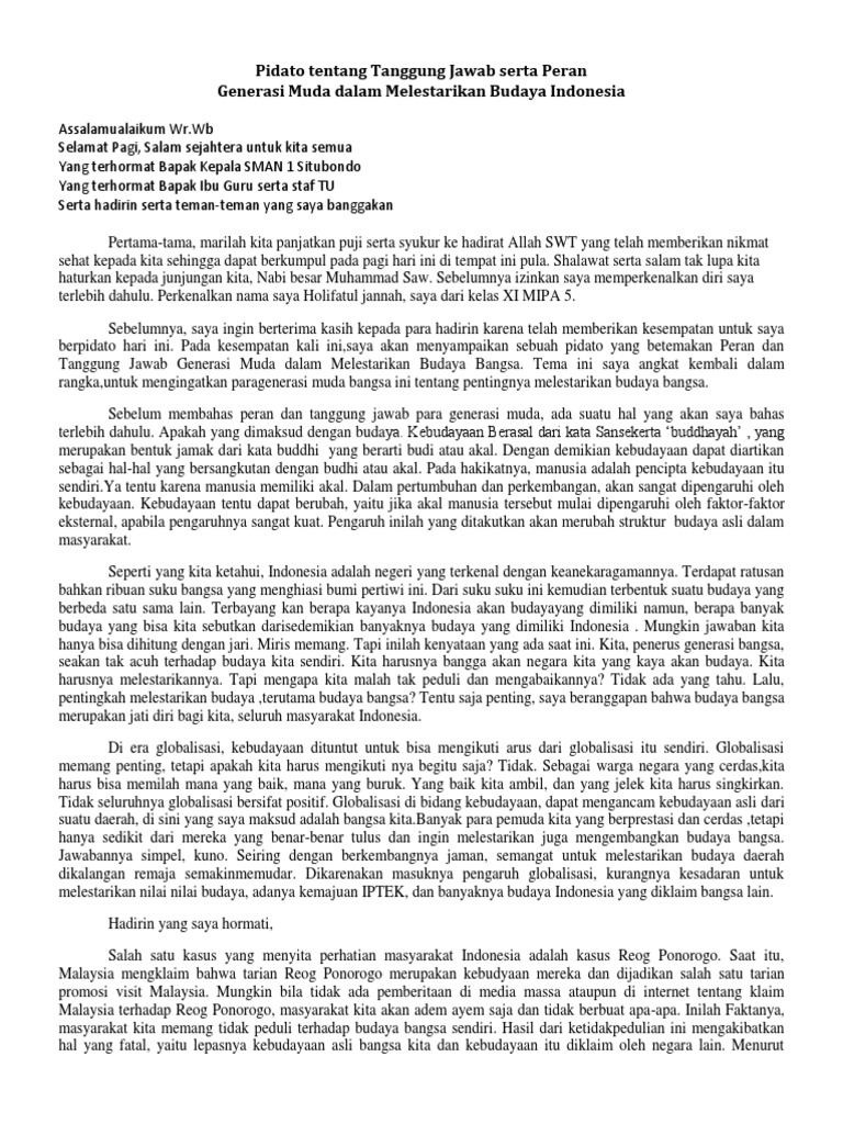 Selamat pagi, assalamu'alaikum warahmatullahi wabarakaatuh. See more of pemuda pemudi generasi indonesia on facebook. Sehingga di artikel ini kita hanya fokus pada contoh teks pidato saja. Banyak topik pidato yang bisa dijadikan contoh, tetapi kami memberikan 5 saja yang biasanya sering dipakai. Salam sejahtera buat kita semua.